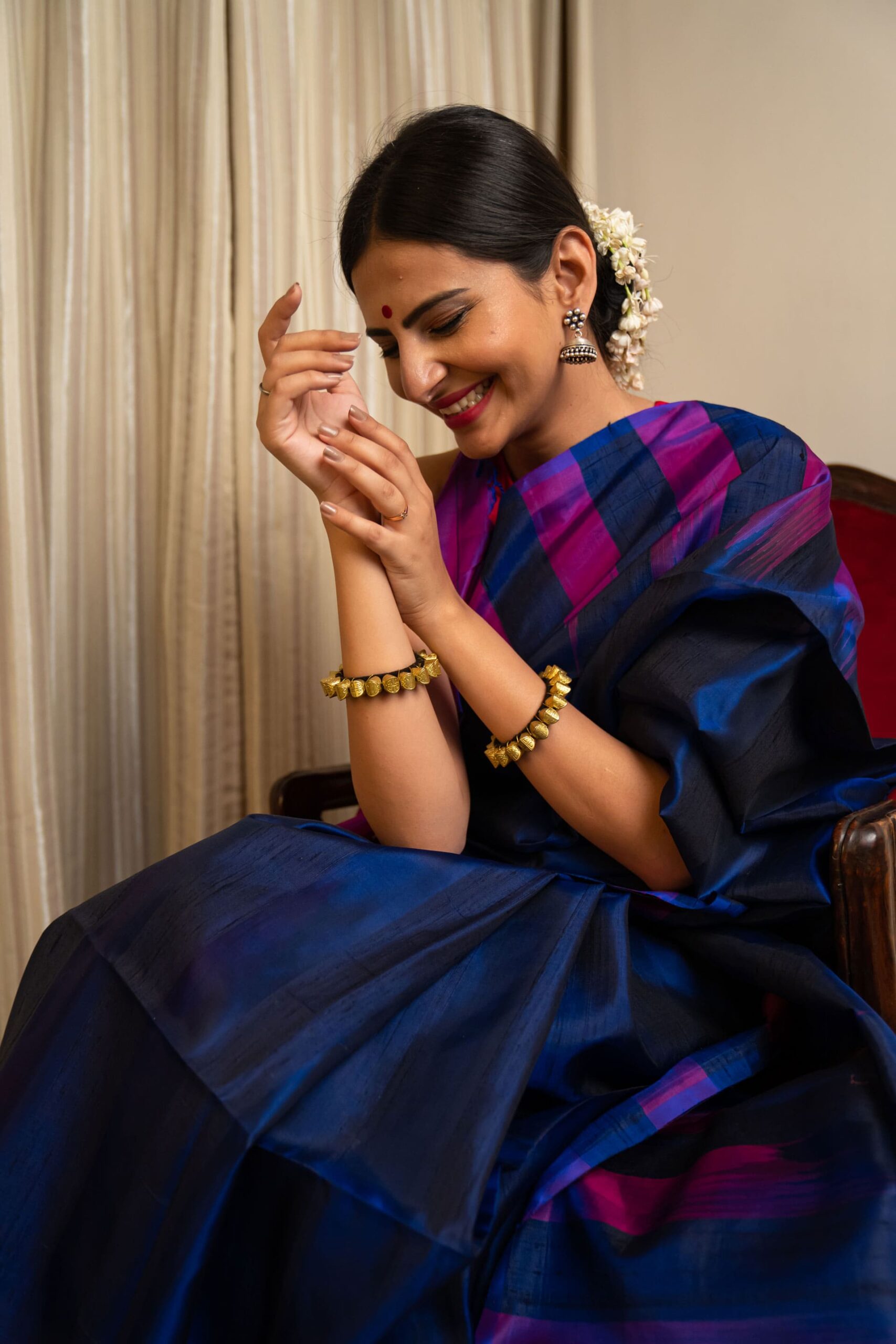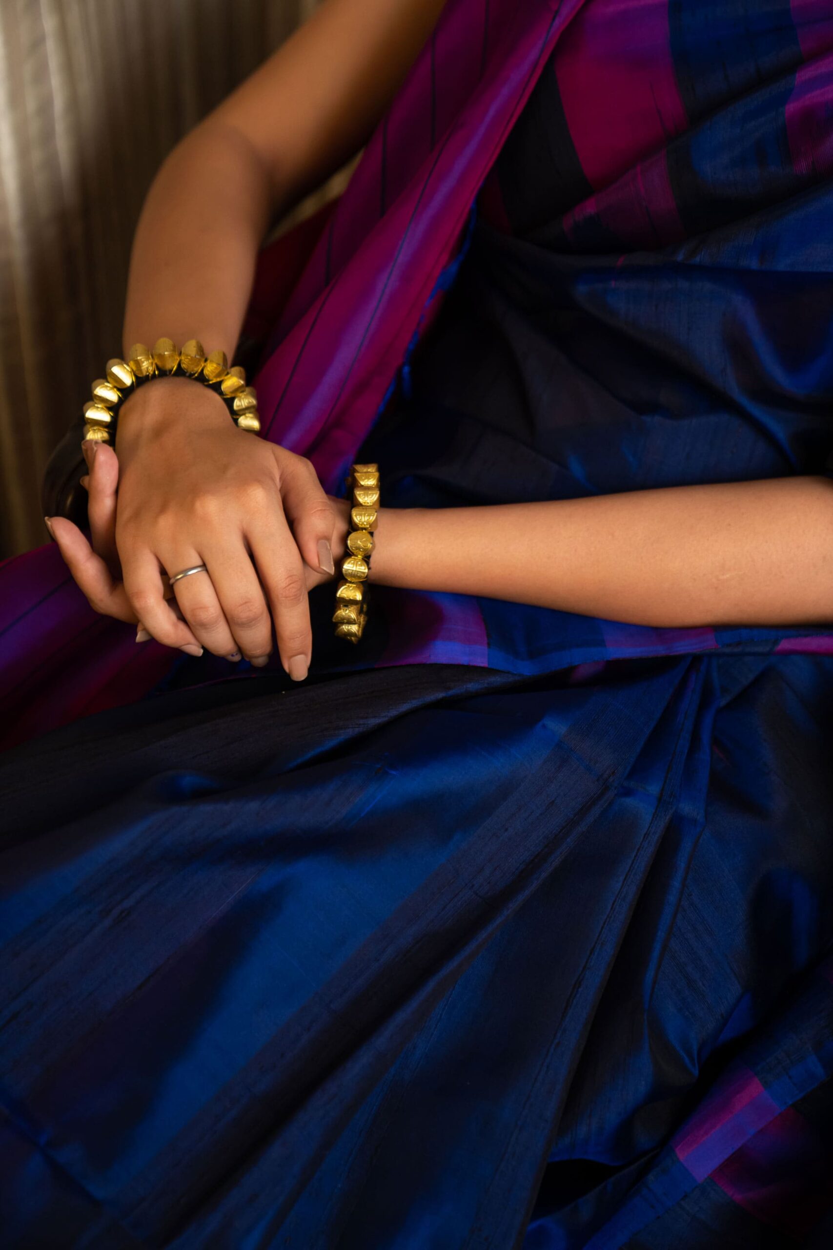 This stunning blue and pink kanjeevaram pure silk saree features a traditional temple border design. The high-quality silk fabric ensures a luxurious drape, making it ideal for traditional occasions. The saree comes with a matching blouse piece and is best cared for with dry cleaning.